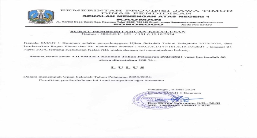 PENGUMUMAN KELULUSAN SMAN 1 KAUMAN PONOROGO TP. 2023-2024